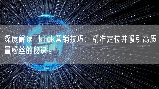 通过深度解读TikTok营销技巧,我们可以发现精准定位和吸引高质量粉丝的关键在于了解平台特性、优化内容创作、运用社交媒体营销策略以及数据分析。只有在充分了解目标受众的基础上,才能创作出受欢迎的内容,吸引更多高质量粉丝。希望本文的探讨能助您在TikTok平台上取得更好的营销成果。